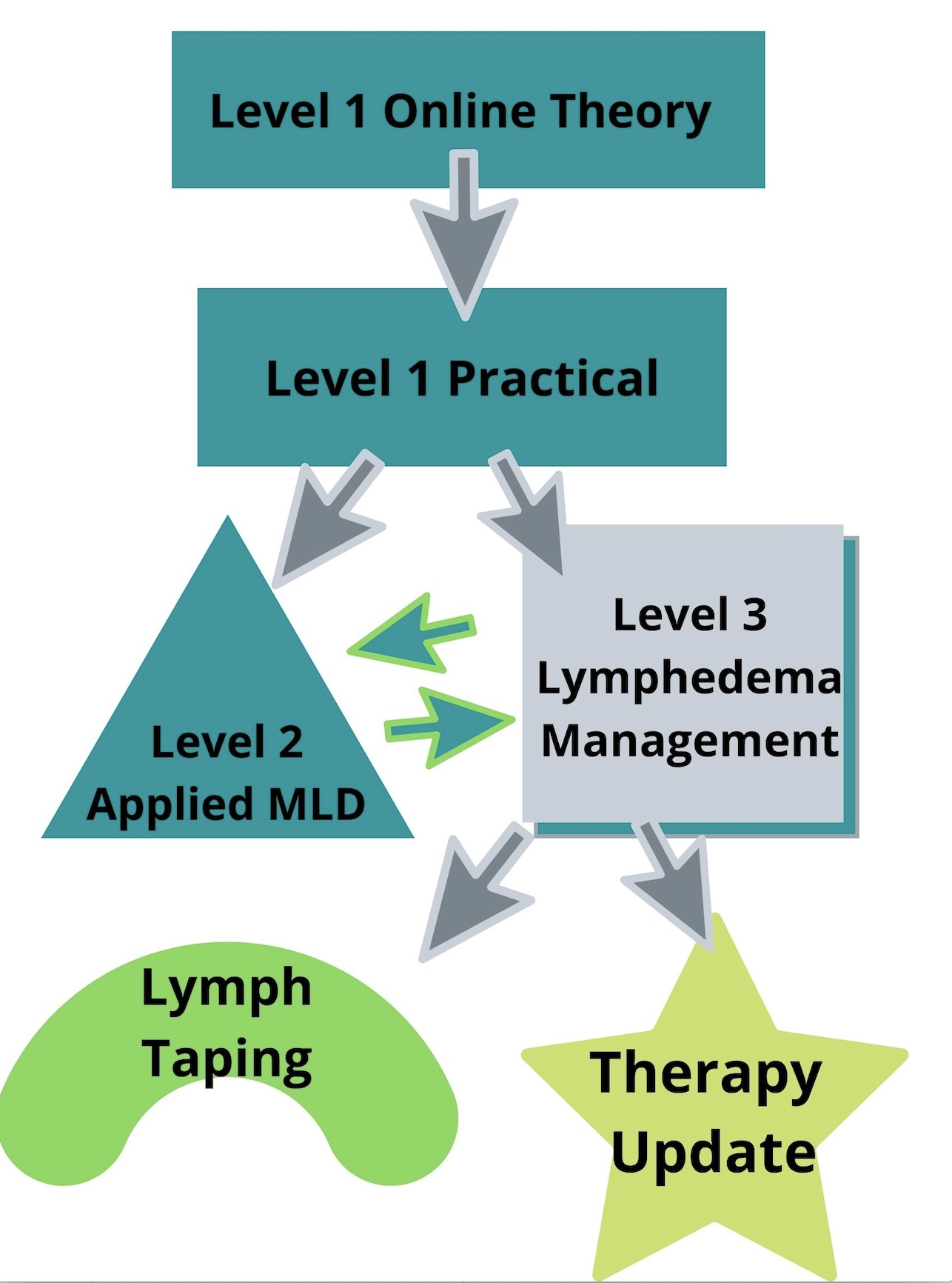 These include whiplash, burns, migraines, tinnitus, CRPS, stroke, supination trauma for the ankle, knee arthroplasty, cruciate ligament repair, adhesive capsulitis and hip pathologies. A practical exam is given at the end of this course and successful completion enables certification in Applied MLD from the Dr. Vodder Academy/School – International. After completing Level 2, you can attend Level 3.